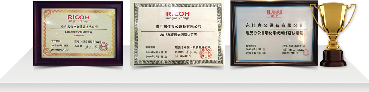 臨沂東佳辦公設(shè)備有限公司成立于1999年,是一家專賣臨沂理光打印機(jī),臨沂復(fù)印打印一體機(jī)等理光辦公設(shè)備及專業(yè)維修服務(wù)于一體的臨沂復(fù)印機(jī)租賃服務(wù)性公司,在多年來的努力拼搏下,公司發(fā)展的發(fā)展突飛猛進(jìn),自2002年至今連續(xù)十九年的理光辦公設(shè)備代理商,先后獲得了理光(我國(guó))授權(quán)臨沂總代理,理光數(shù)碼復(fù)印機(jī),一體機(jī)臨沂總代理,理光辦公設(shè)備網(wǎng)絡(luò)認(rèn)證店,理光辦公設(shè)備維修認(rèn)定店等產(chǎn)品代理資質(zhì)及維修資質(zhì)。并配備了大量理光數(shù)碼辦公設(shè)備原裝零配件及其系列的純正耗材。